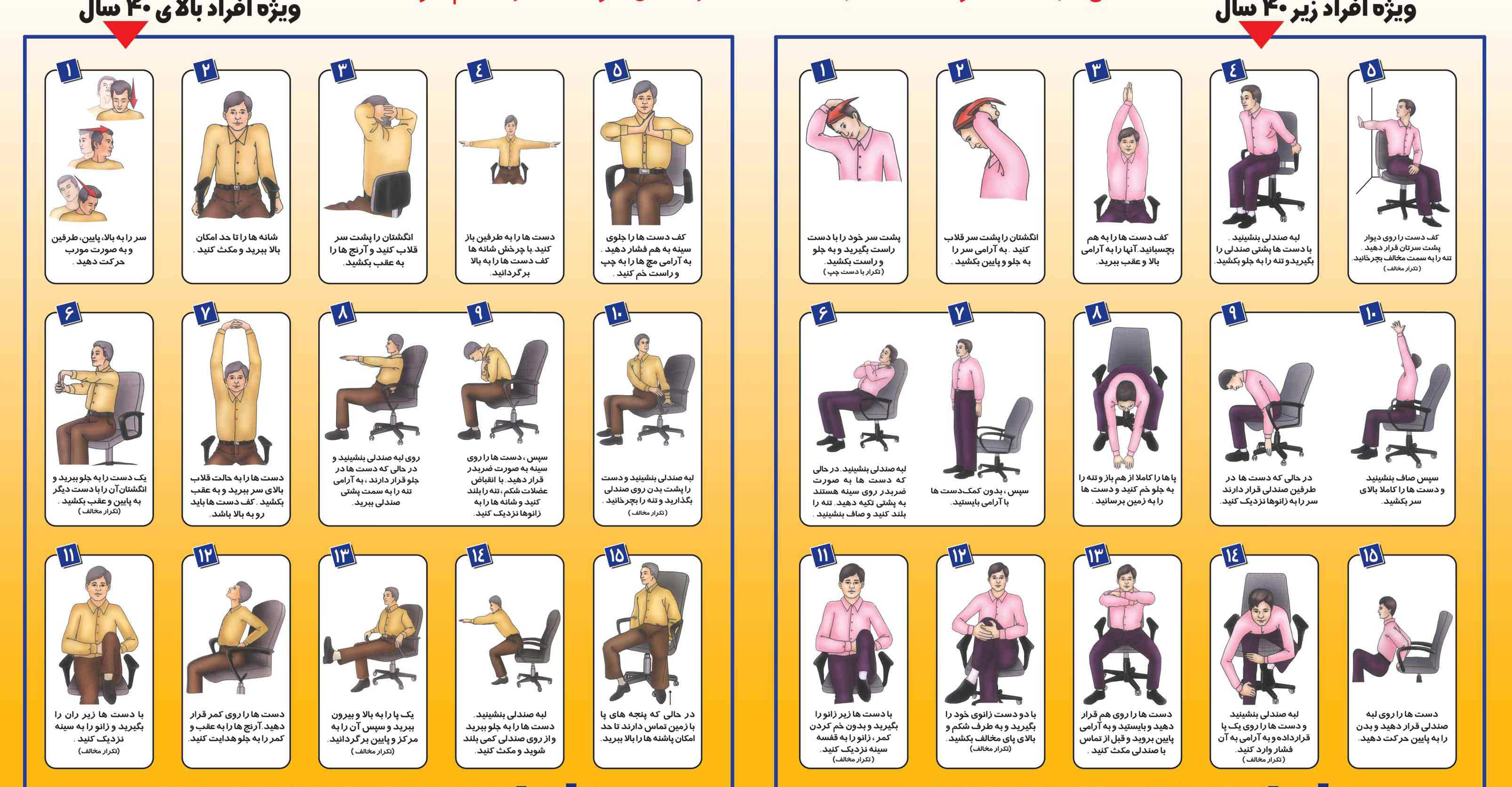 به علت عدم استاندارد بودن صندلی و یا نحوه نشستن فرد گردن و ستون فقرات و شانه ها از حالت استاندارد خارج میشود.